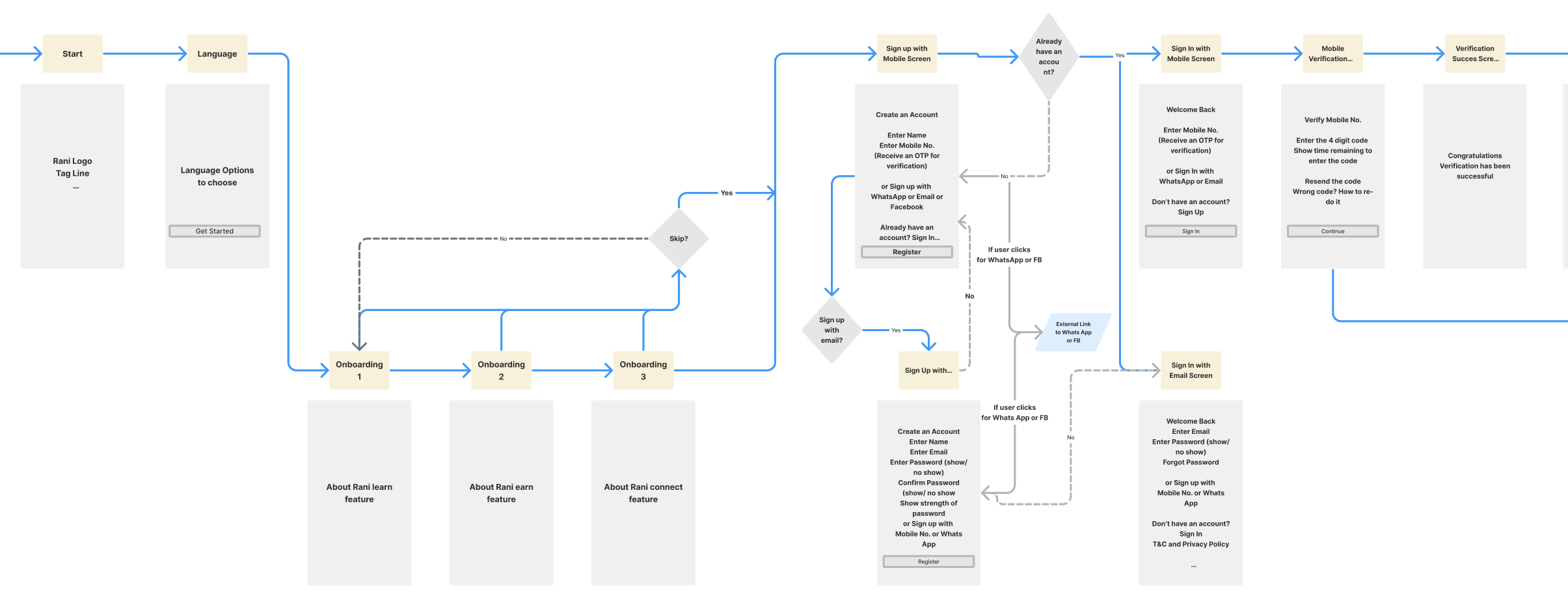 In response, I created a fundamental app flow, fostering a productive brainstorming session with the team. It became evident that the onboarding process was a significant bottleneck in the user flow.