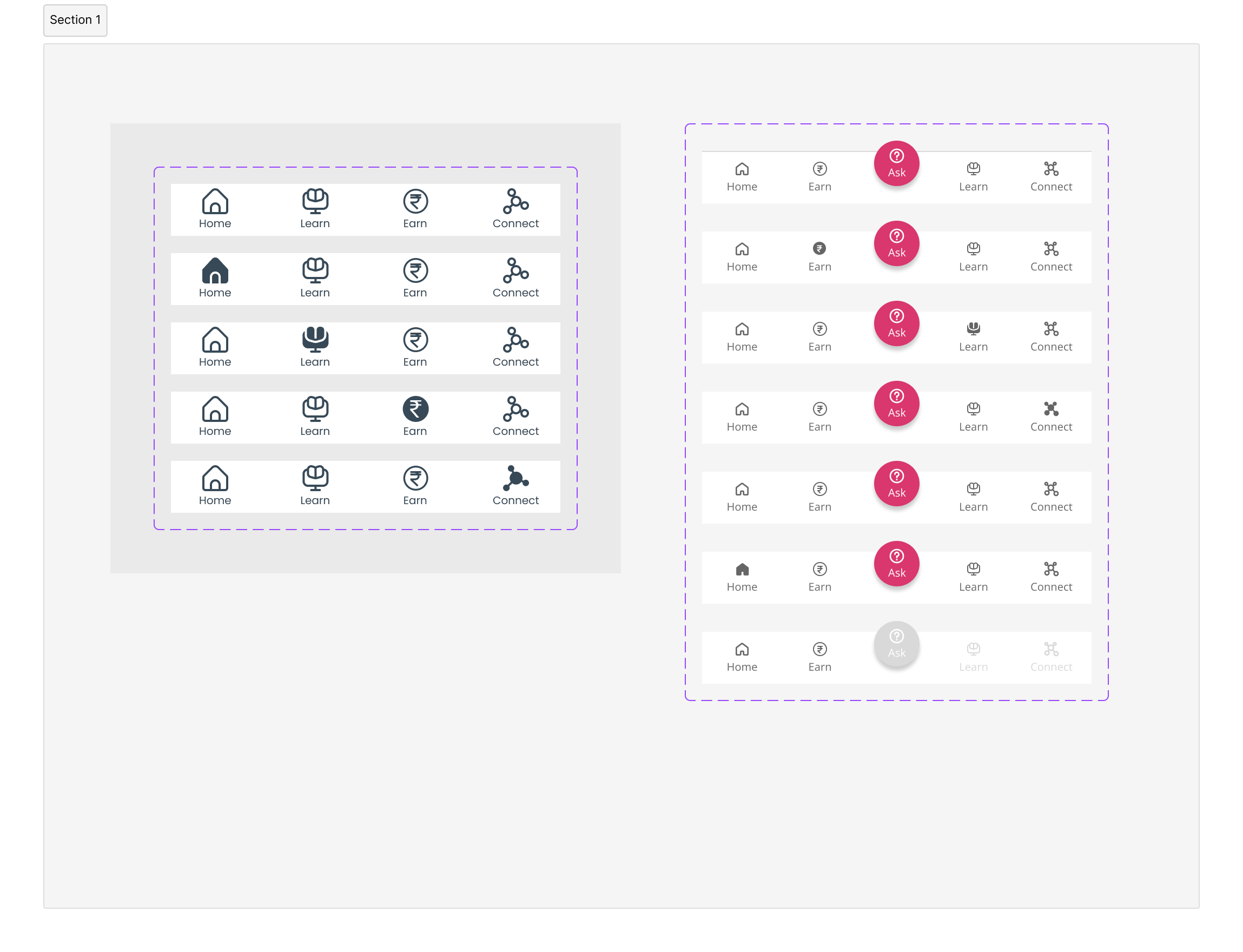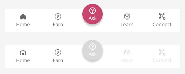 Previously, in the old design, the “Learn” and “Connect” pages were left blank as it was not implemented in the app. The team wanted to provide the users with a glimpse of the “Learn” and “Connect” sections. In the new design, these sections were disabled, supporting the team’s requirements but also signifying the users of its status.